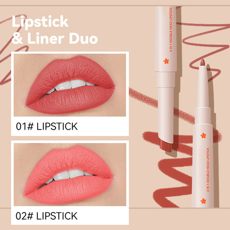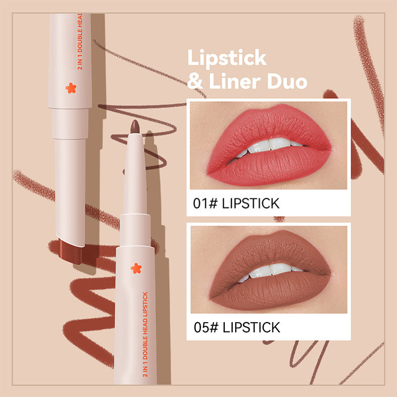 Long-Lasting Double Head Lipstick & Lip Liner
