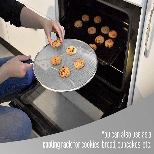 The multifunctional splatter screen protector can serve you at the same time for different needs because it's so versatile! It can be used as a strainer, steamer and even a cooling rack. During various stages of cooking, this incredible oil splash cover will facilitate the process and make your life easier! So sit back and enjoy the food with your family faster than before! -