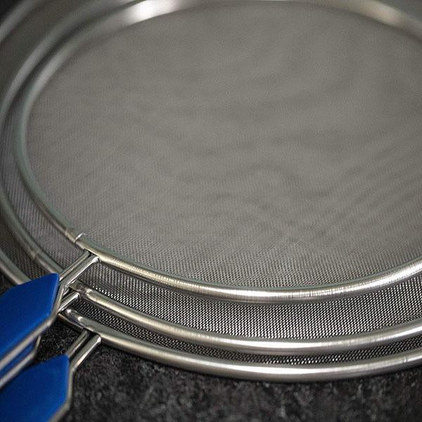 With a long, sturdy plastic handle that allows you to keep a safe distance from hot objects and burns. The high-quality stainless steel mesh guard is tightly woven to block the oil splatter while still allowing for steam to exit.