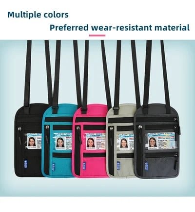 this travel wallet has five smart storage compartments to easily organize your documents and valuables, including four zipper pockets, Travel bag with adjustable hook, strap and buckle